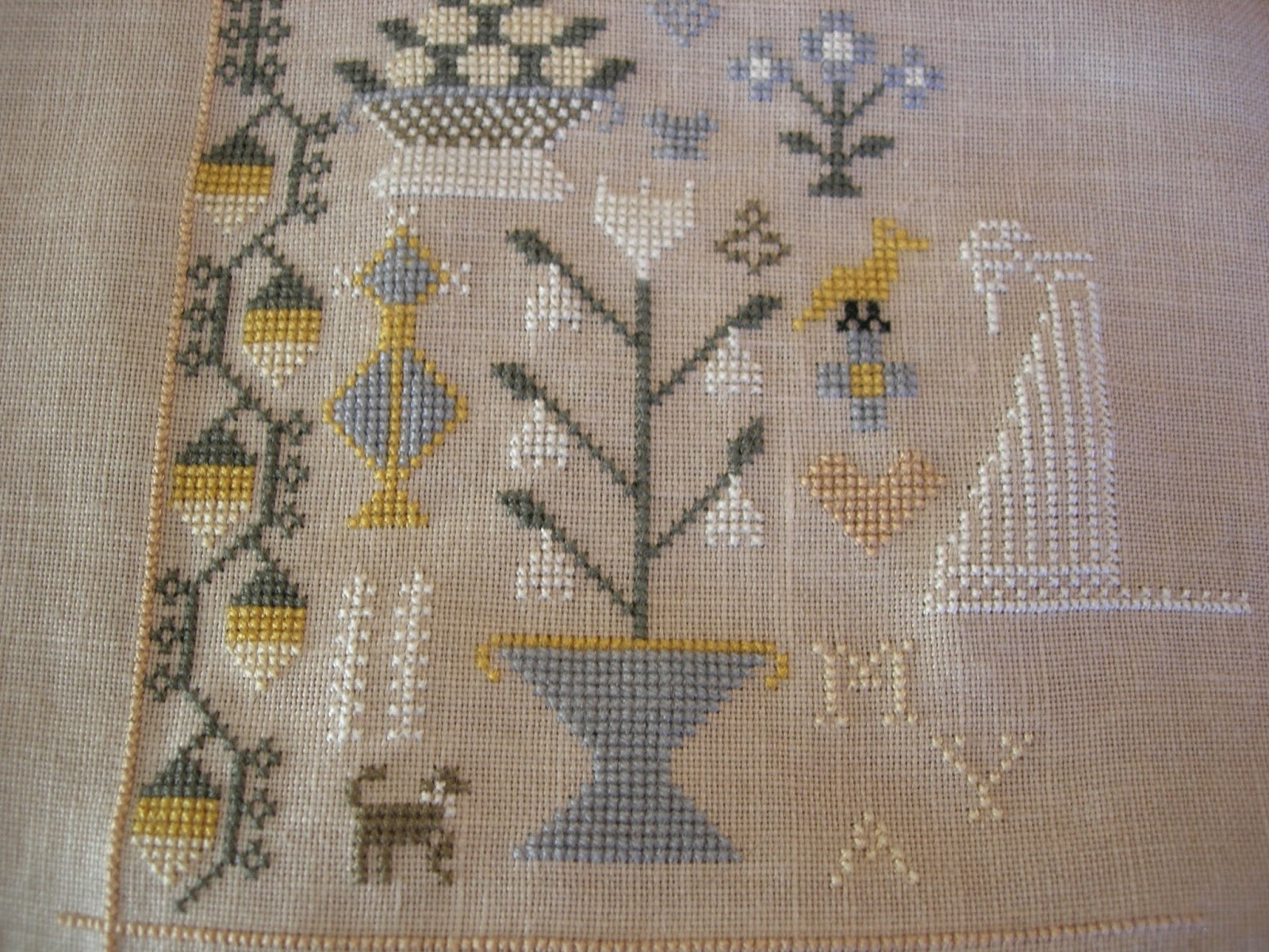 There's a lot of time-consuming over-one in this project. 40 count Lakeside Linen in Magnolia using the called-for AVAS fibers.