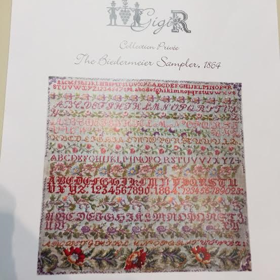 I have a new start! The minute I saw Gigi R's "Biedermeier Sampler," I knew I had to stitch it. It's charted for DMC, which I purchased. I had a nice piece of Lakeside in Porcelain (40 count) in my stash, and I have converted all the DMC colors to silks from my stash.