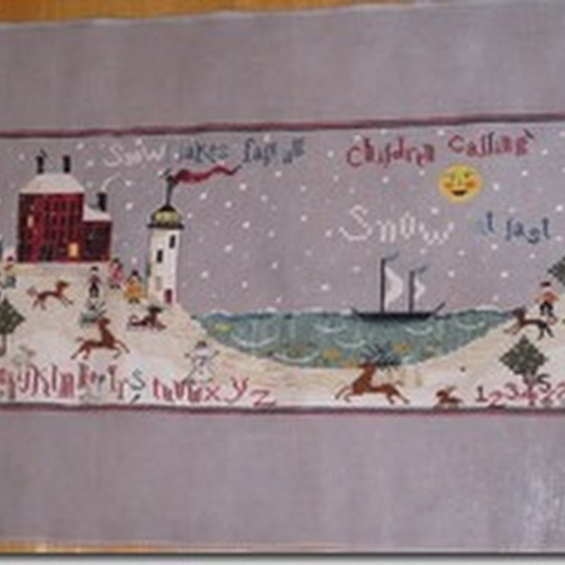 You may have seen this. It's Primitive Tradition's "Love to One, Friendship to Many, Good Will to All." It's stitched on 40 ct Misty Rain by Lakeside, using CC and GAST fibers (or DMC). Lots of fill-in here, but such a wonderful design.